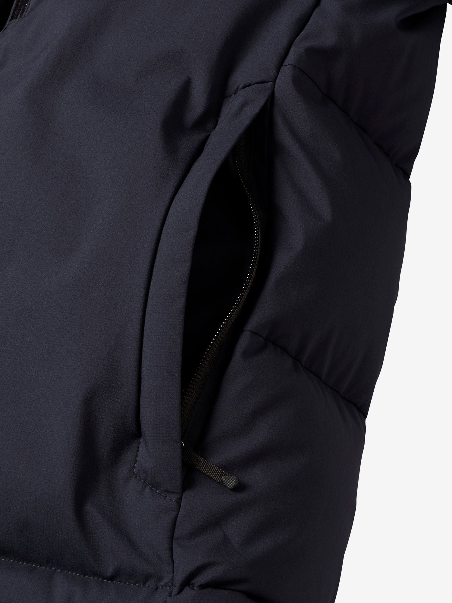 中わた入りの内襟やフロントのダブルフラップなどでコールドスポットを軽減。