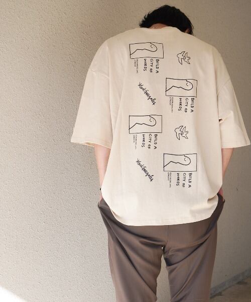 フロント中央にはロゴプリント、バックには連続するアートプリントが施されております。