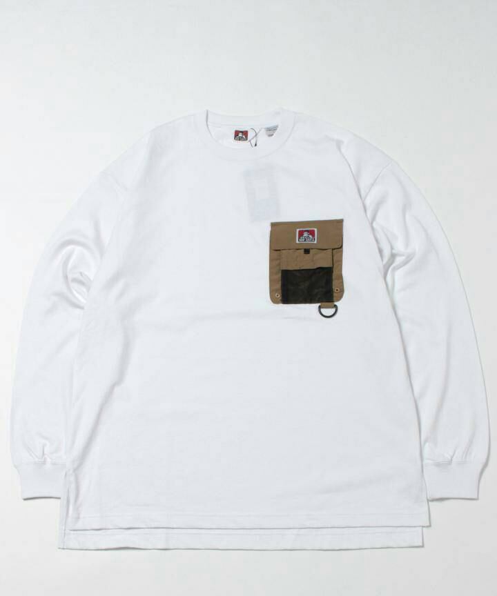 BEN DAVIS (ベンデイビス) ビッグシルエット ユーティリティーポケットロンT 長袖Tシャツ ホワイト C-1380017