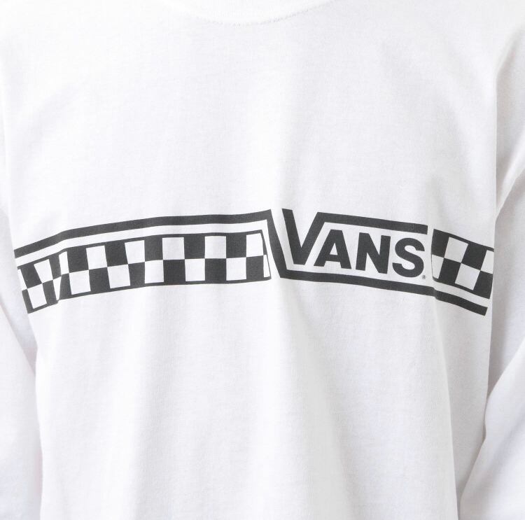 チェッカーラインとVANSロゴを組み合わせたクラシカルなデザインのL/S Tシャツ。