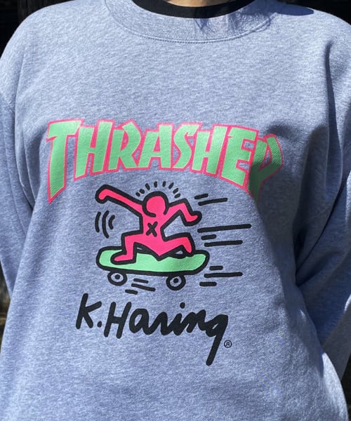 THRASHER×KeithHaring (スラッシャー×キース・ヘリング) コラボ トレーナー グレー KH-TH2112