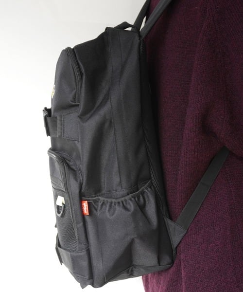 スケートボード用ストラップが施されたバックパック。